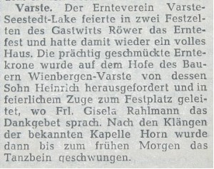 Erntepaar: Heinrich Wienberg und Gisela Rahlmann verh. Wellborg (Varste 74b)